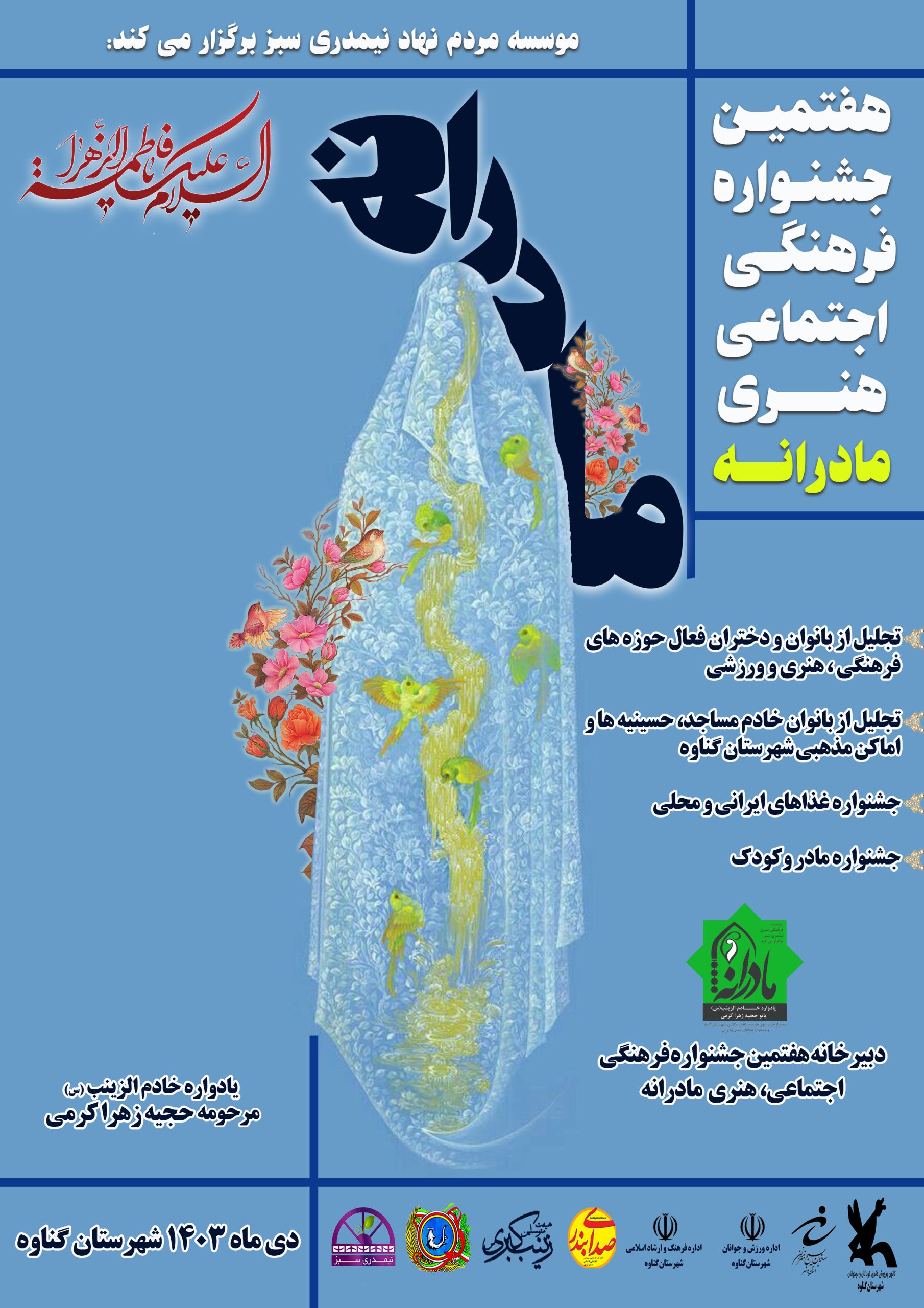 لازم به ذکر است هفتمین جشنواره فرهنگی اجتماعی و هنری مادرانه در دی ماه ۱۴۰۳ در شهرستان گناوه برگزار می گردد.