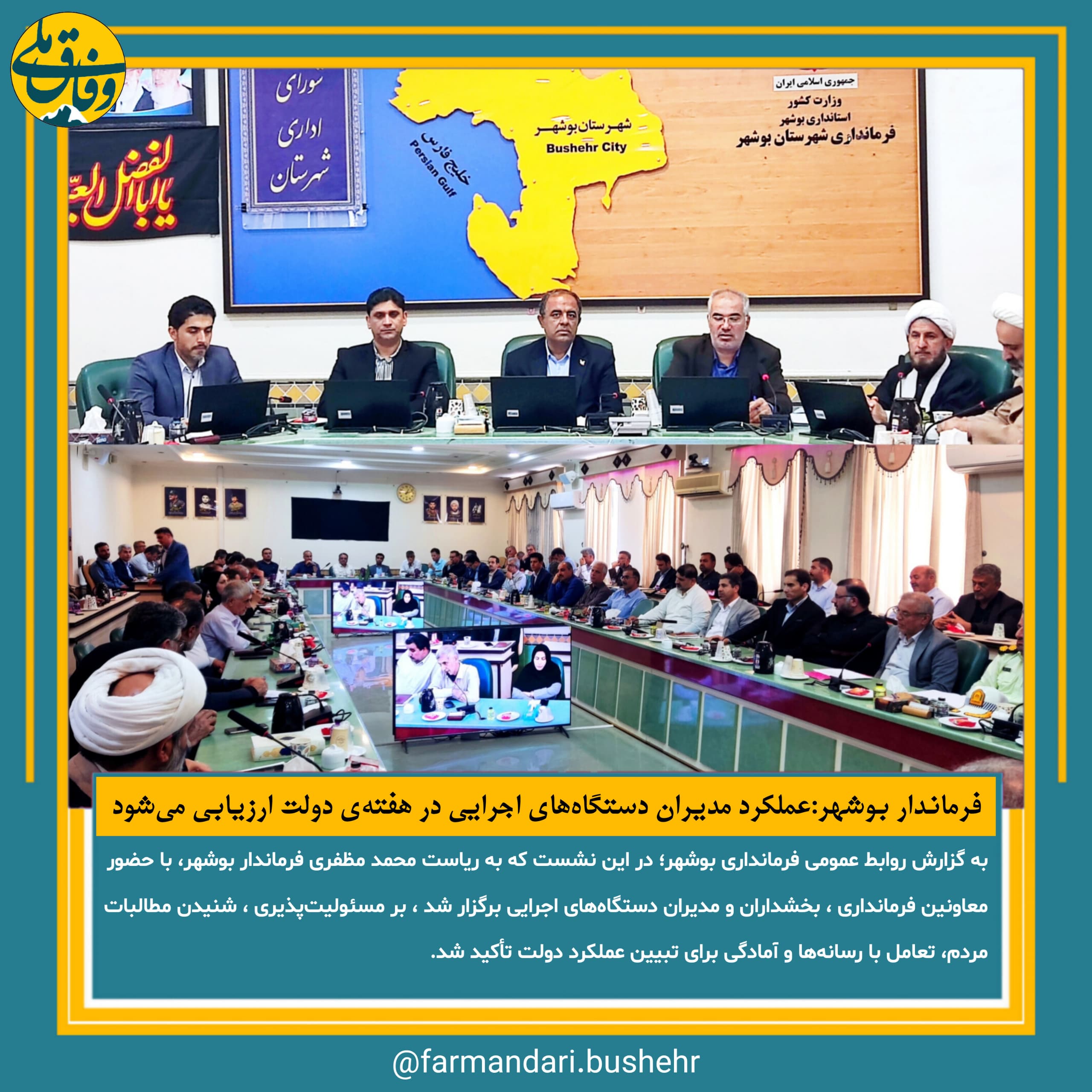فرماندار بوشهر:عملکرد مدیران دستگاههای اجرایی در هفتهی دولت ارزیابی میشود
